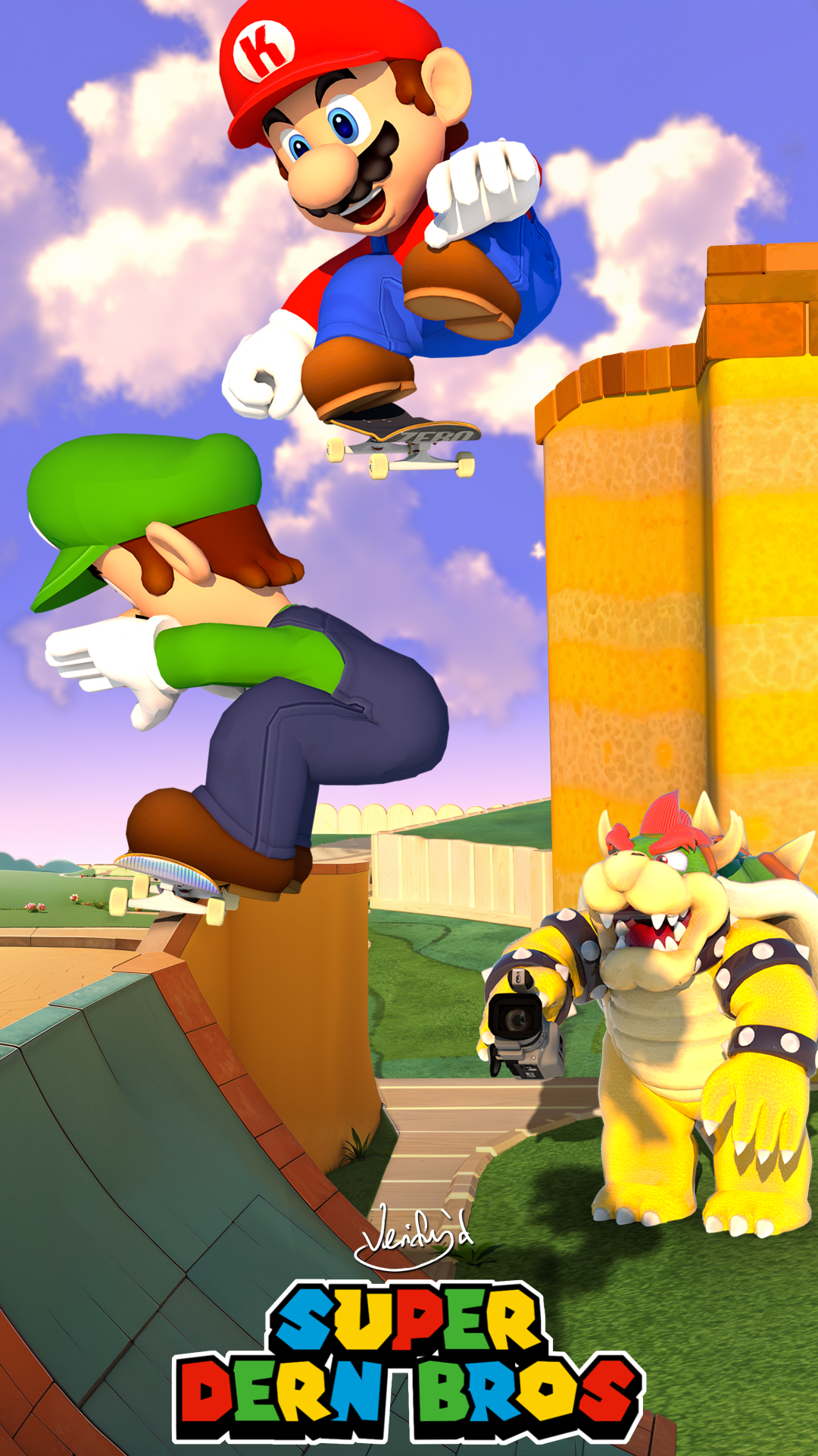 Kanaan and Dalton Dern skate warp pipes and question blocks in full Mushroom Kingdom glory